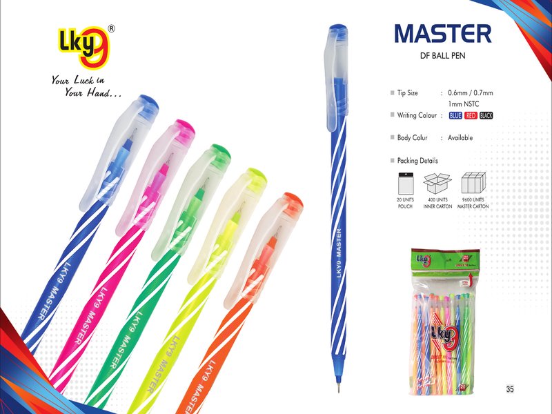Premium quality writing pen by LKD. The Master is manufactured by STRT Pen Wings Private Limited (ISO 9001:2015 certified), available in Blue, Red & Black ink. ISI certified for guaranteed quality.